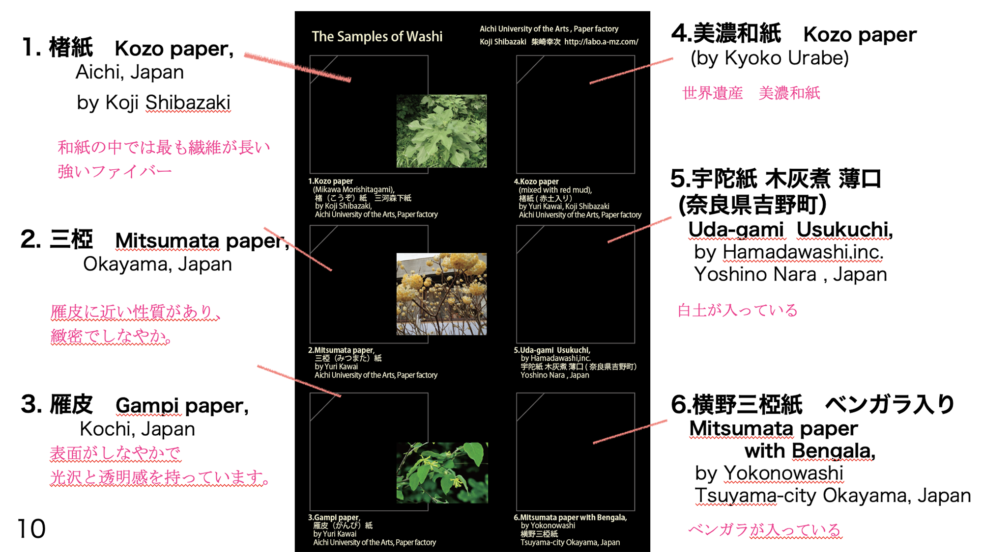 [Figure 2] Some samples of washi and their explanations.