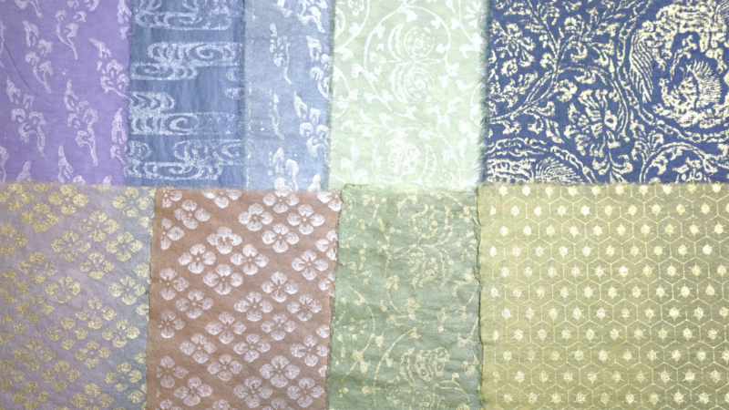 [Photo 16] 料紙と版木や型紙の応用。 Application of paper, woodblocks and stencils