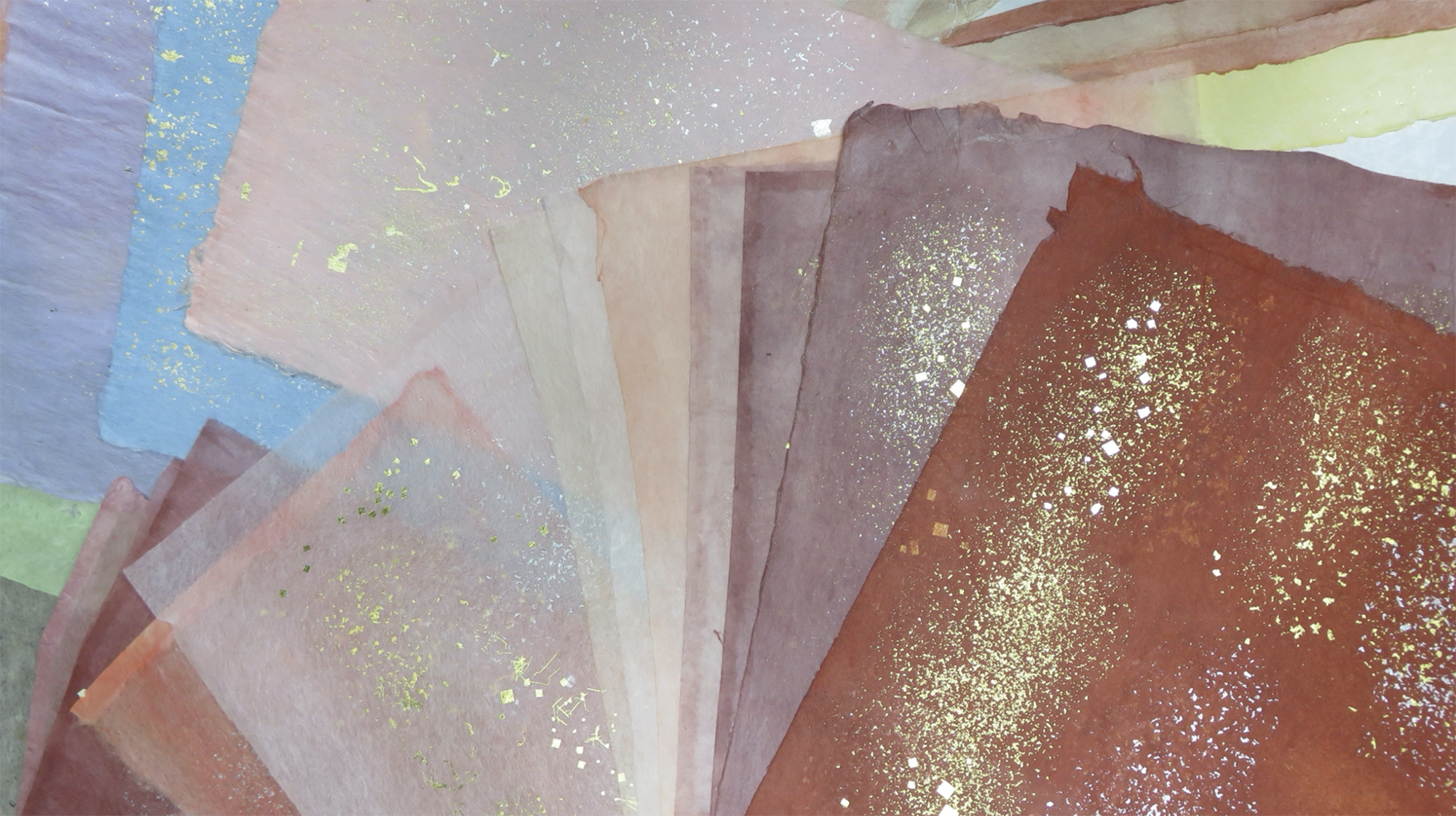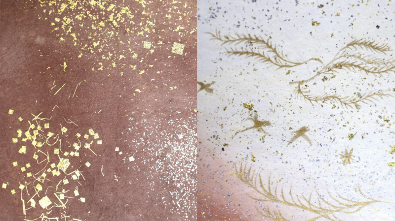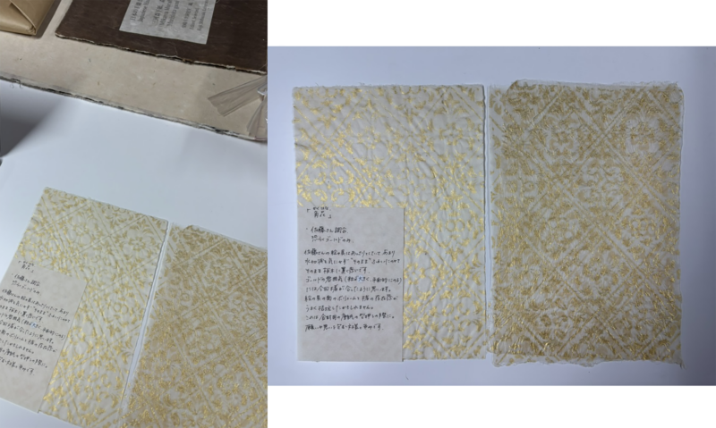 [Photo 21] Gold and silver sandago (sunago) paper, cut leaf (kirihaku), and gold-painted writing paper.