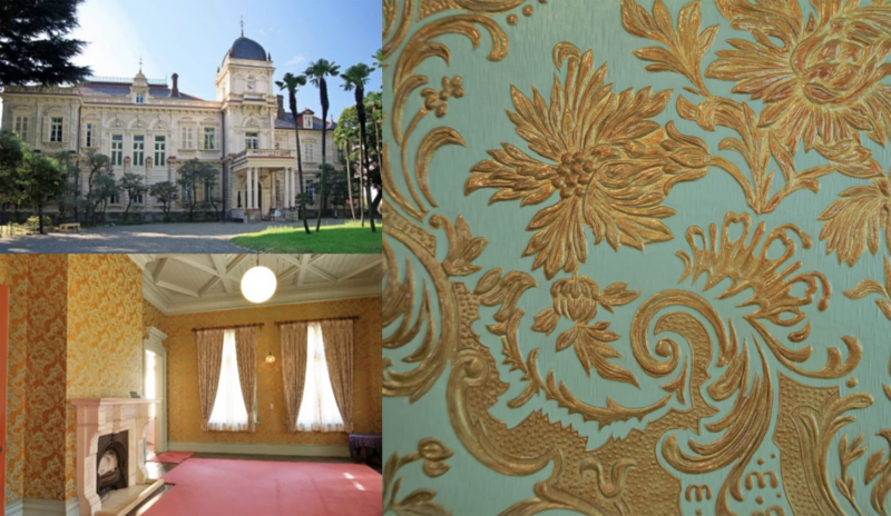 [Photo 27] Japanese Gikaku Paper (Imitation Leather Paper) used in the Iwasaki House in Japan designed by architect Josiah Conder.