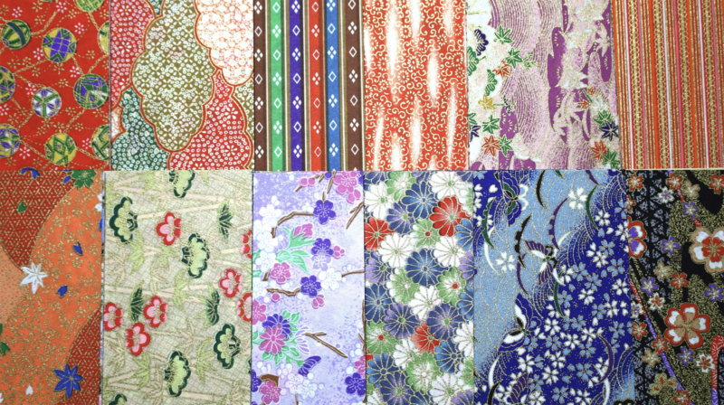[Photo 28] Chiyogami paper. It is rare to find chiyogami made by woodblock printing today.