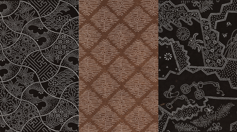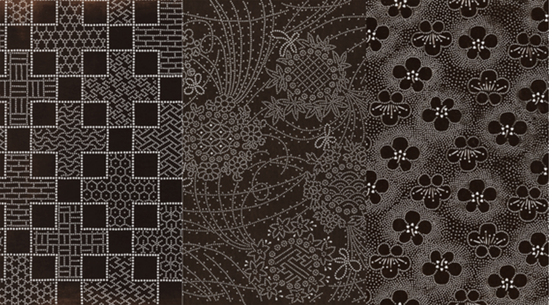 A pattern template sheet is made by pasting together multiple sheets of Japanese paper with persimmon tannin, and then carving out a pattern with a chisel. It was also used to dye textiles or cloth for kimonos.