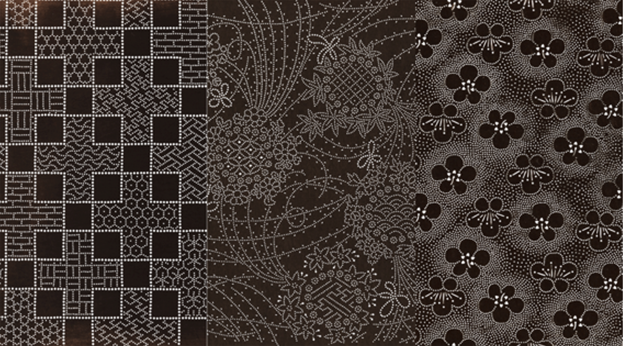 [Photo 18] Uchigumo (lying cloud pattern), Tobigumo (flying cloud pattern), and Ramon (Ramon pattern).