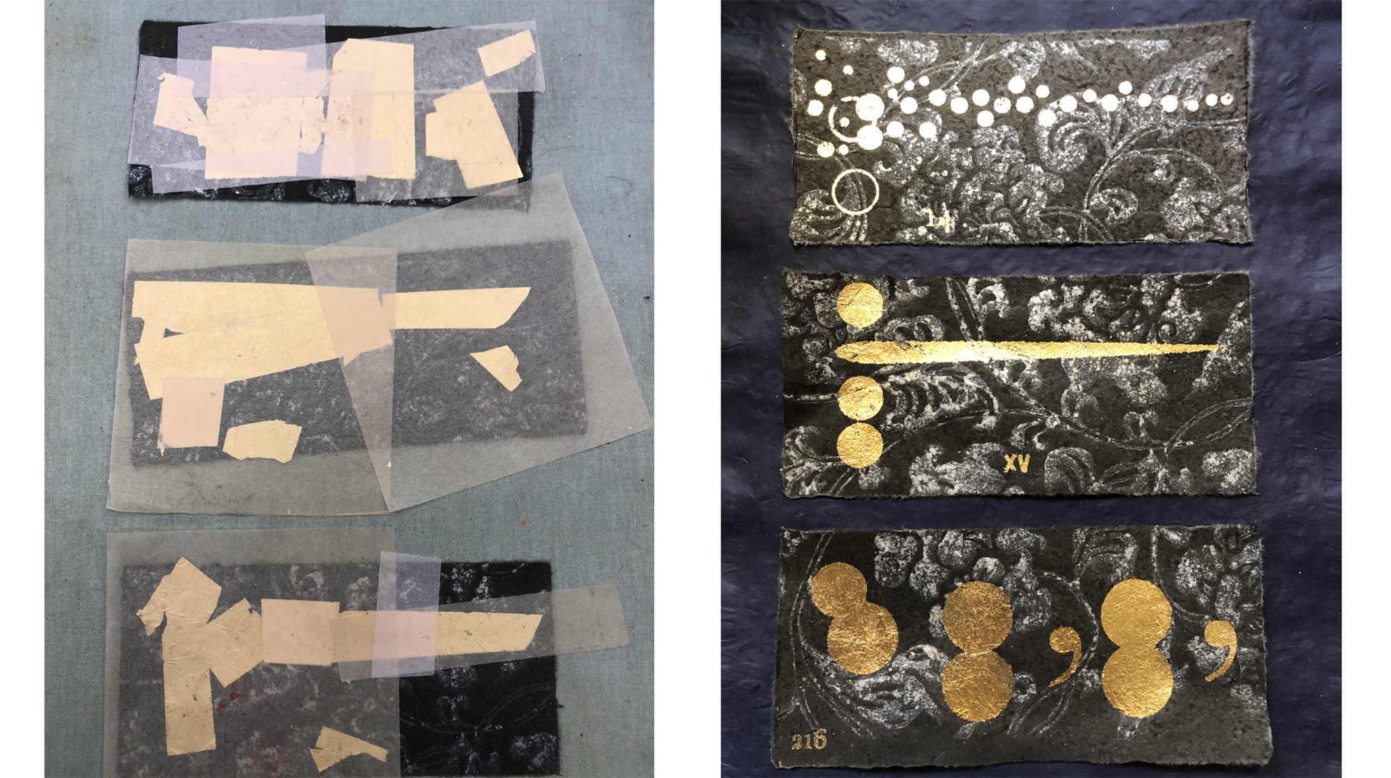 [Photo 46] The process of creating the art with the “kirikane” technique.