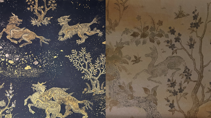 Kinkara leather paper was used for cigarette cases and high-quality wallpaper, and was exported to Europe at the Vienna World’s Fair in 1873, where it was also used at places such as Buckingham Palace.